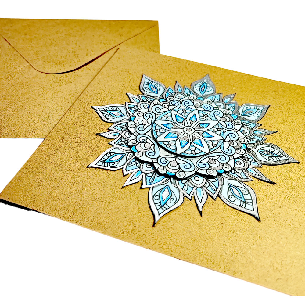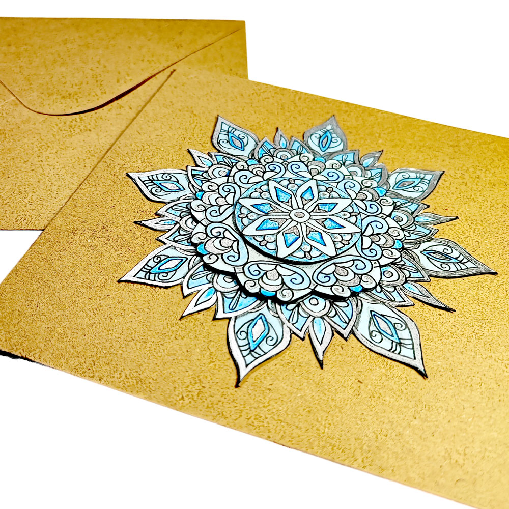 Verleihe deinen Grüßen einen Hauch von Wintermagie und bleibender Eleganz mit dieser handgefertigten 3D-Aquarellkarte. Diese Karte ist mehr als nur ein Grußträger; sie ist ein kleines, charmantes Kunstwerk, das die Schönheit des Winters einfängt und ideal für alle ist, die eine hochwertige Winter-Grußkarte in Mandala-Optik kaufen möchten, die wirklich in Erinnerung bleibt.