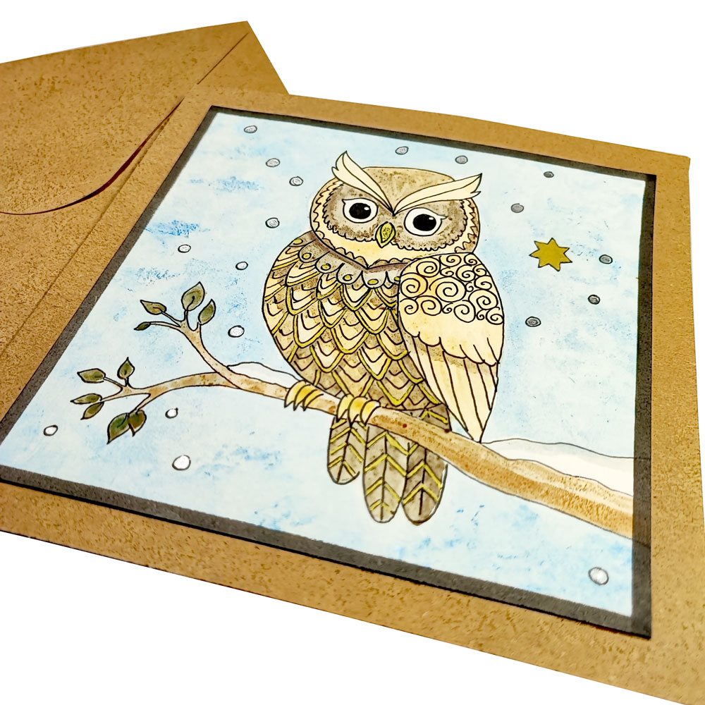 Ob zum Geburtstag, als Dankeschön oder einfach, um jemandem eine Freude zu machen – diese Eulenkarte ist mehr als nur ein Gruß. Sie ist ein kleines, charmantes Kunstwerk, das in Erinnerung bleibt und ein absolutes Unikat ist. Das 15×15 cm Format bietet dir zudem genügend Platz für deine persönlichen Worte.