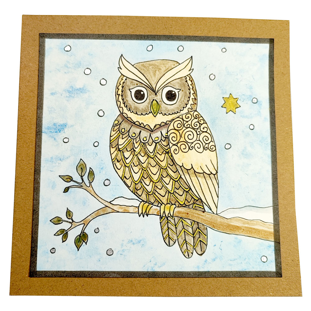 Handgemalte Tiermotiv aquarell Karte Noctua