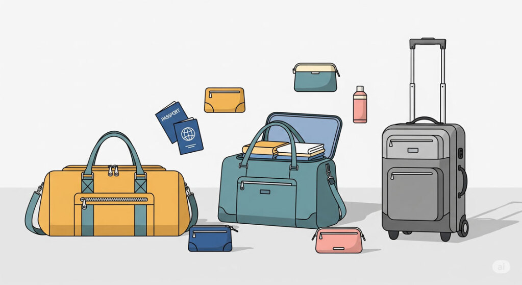 - Duffel Bag: Zylindrisch, mit Schulterriemen – sportlich und robust.