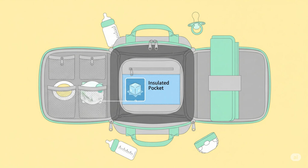 - Mehrere Fächer für Windeln, Fläschchen & Co.